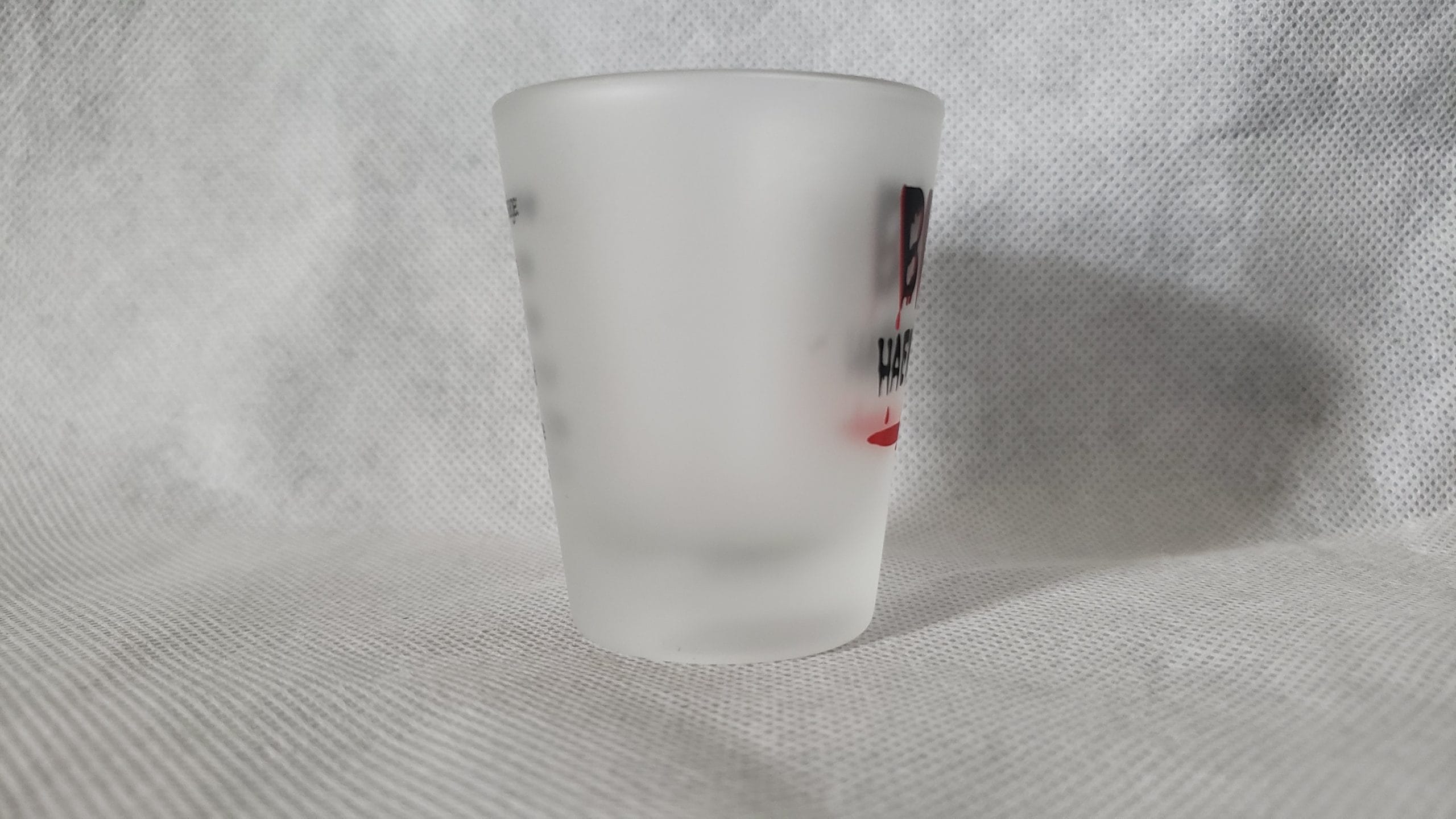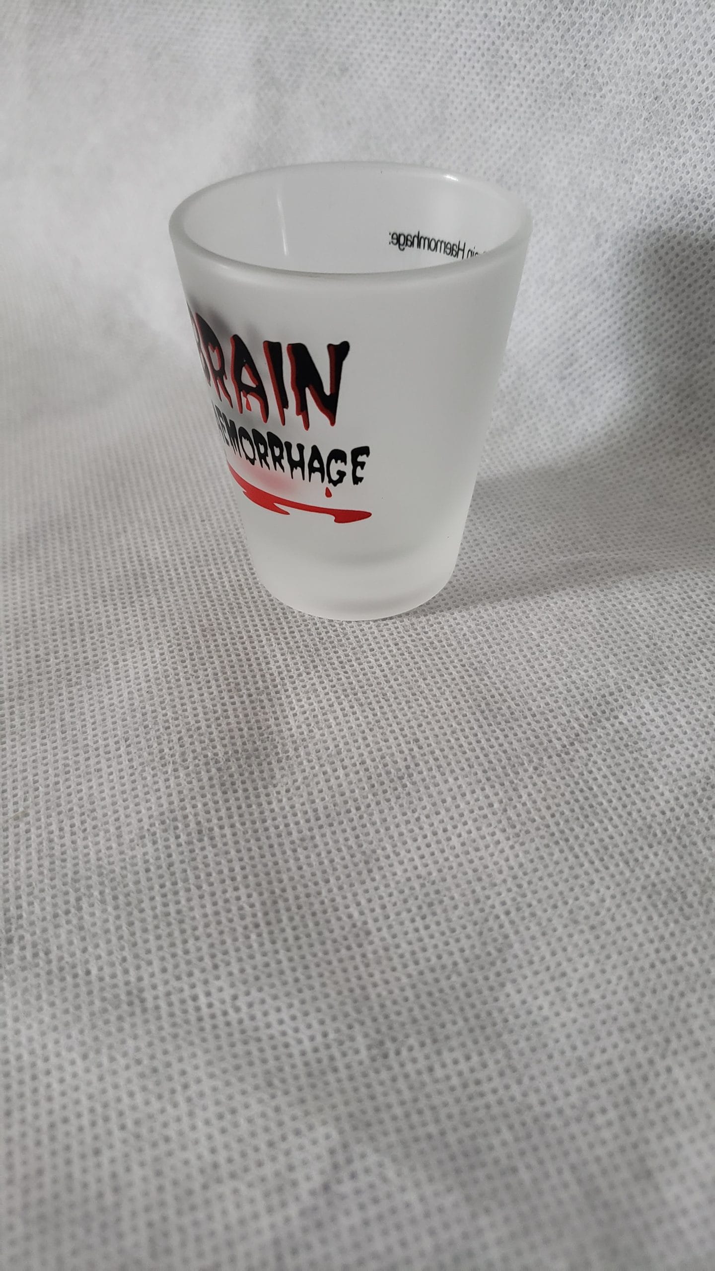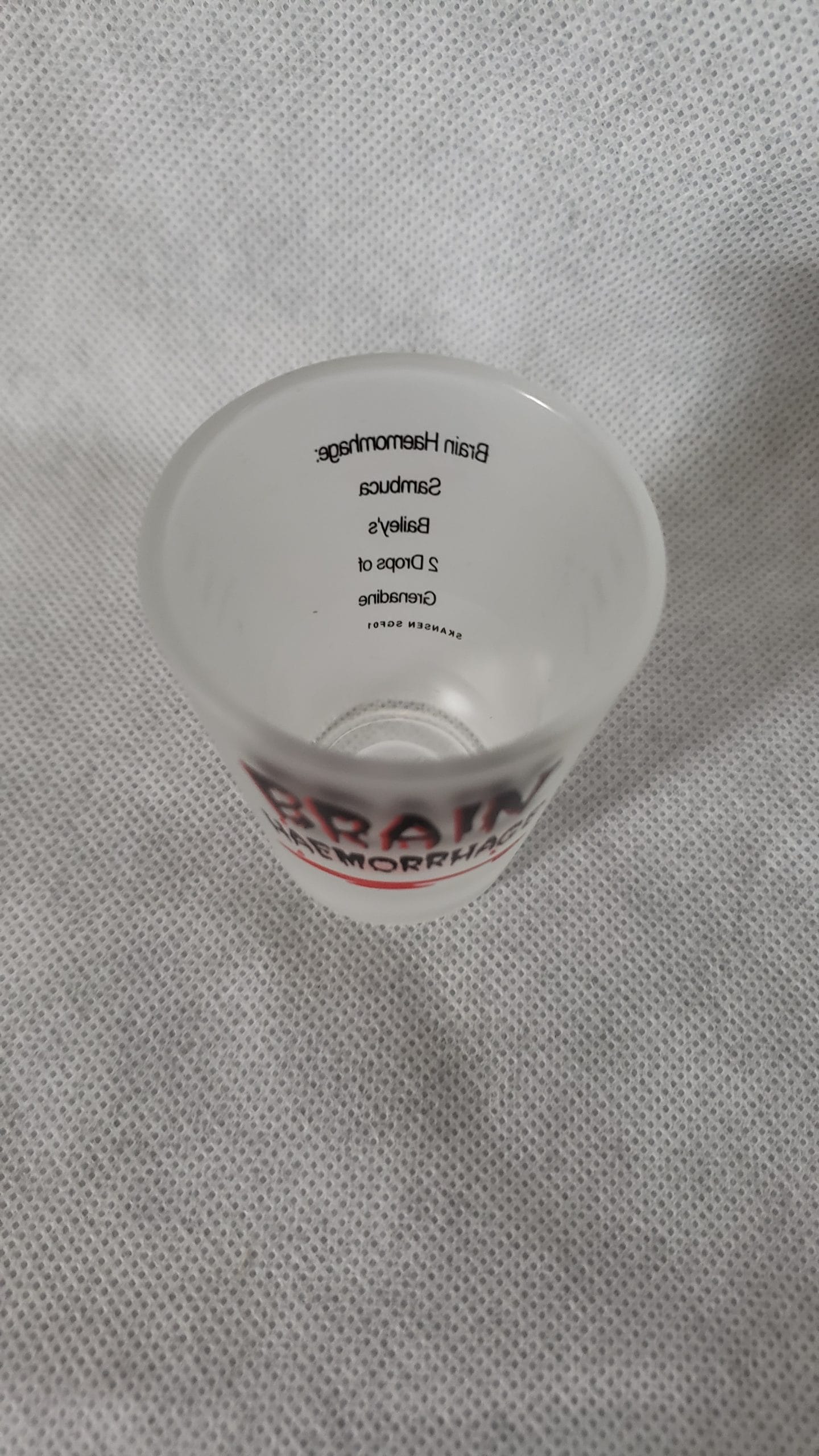 Brain Hemorrhage Frosted Whiskey Shot Glass with Recipe Printed on Back by Skansen Barware SGFG01