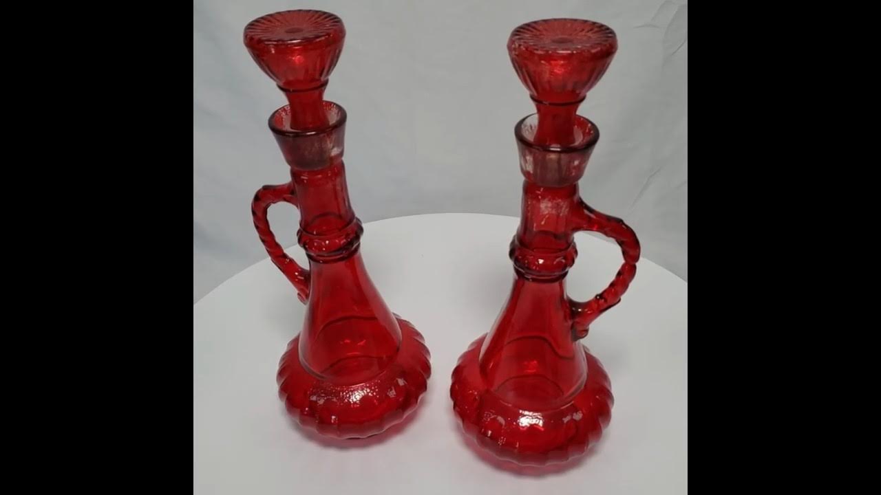 - Vintage ruby red glass genie bottles with matching stoppers