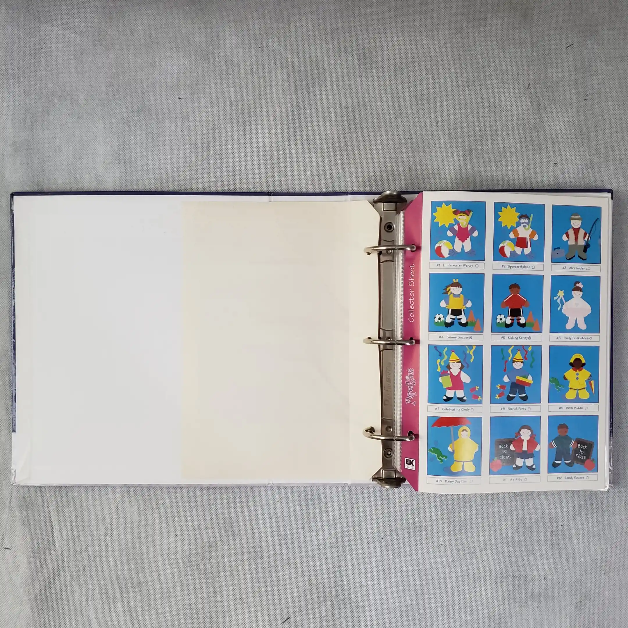 - 1 Paperkins Collectible Padded Cardboard Book Binder #2 with 25 sheet protector pages & acid-free inserts, and 1 Collector Sticker Sheet (Used)