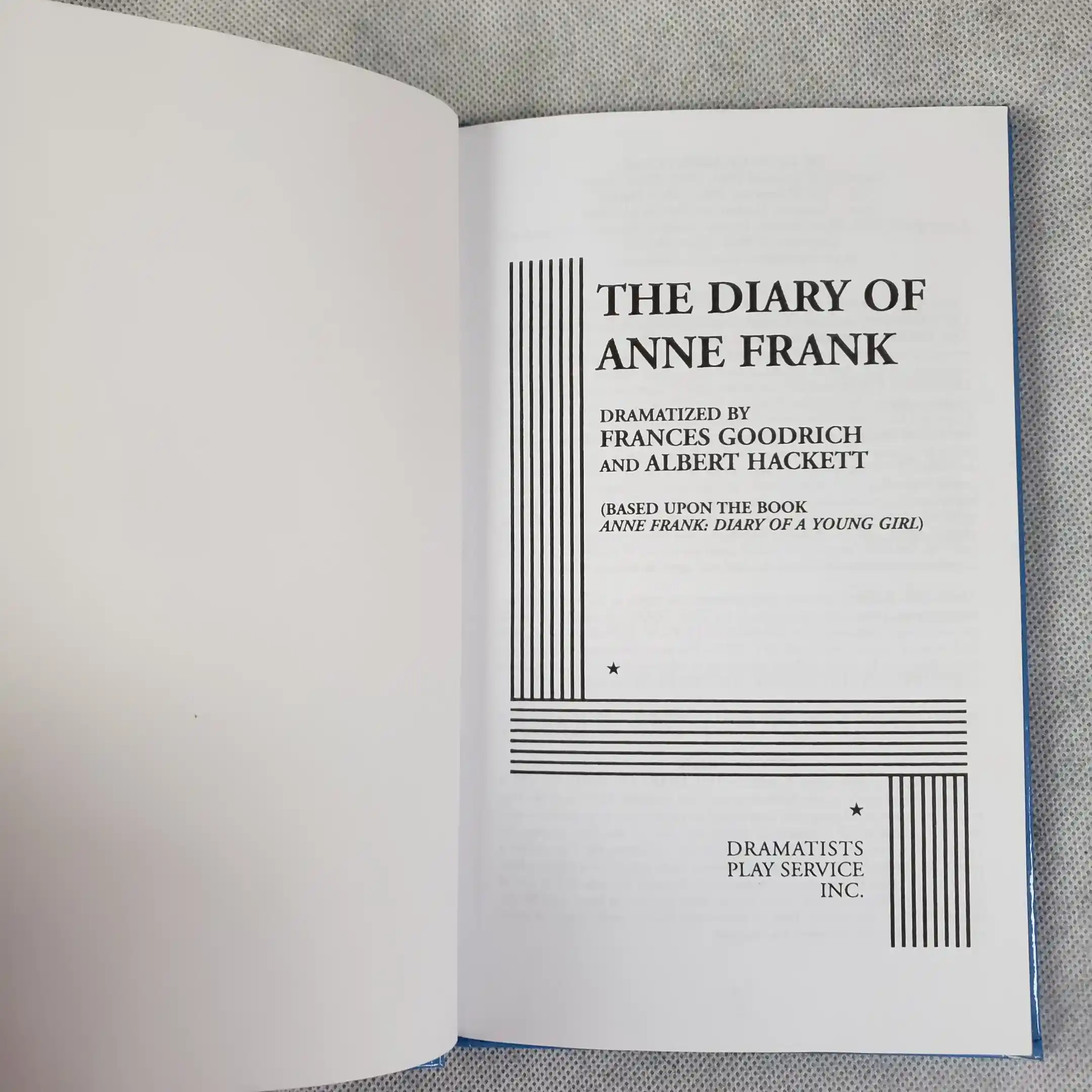 The Diary of Anne Frank Theater Stage Play Script Hardcover Book by Dramatists Play Service