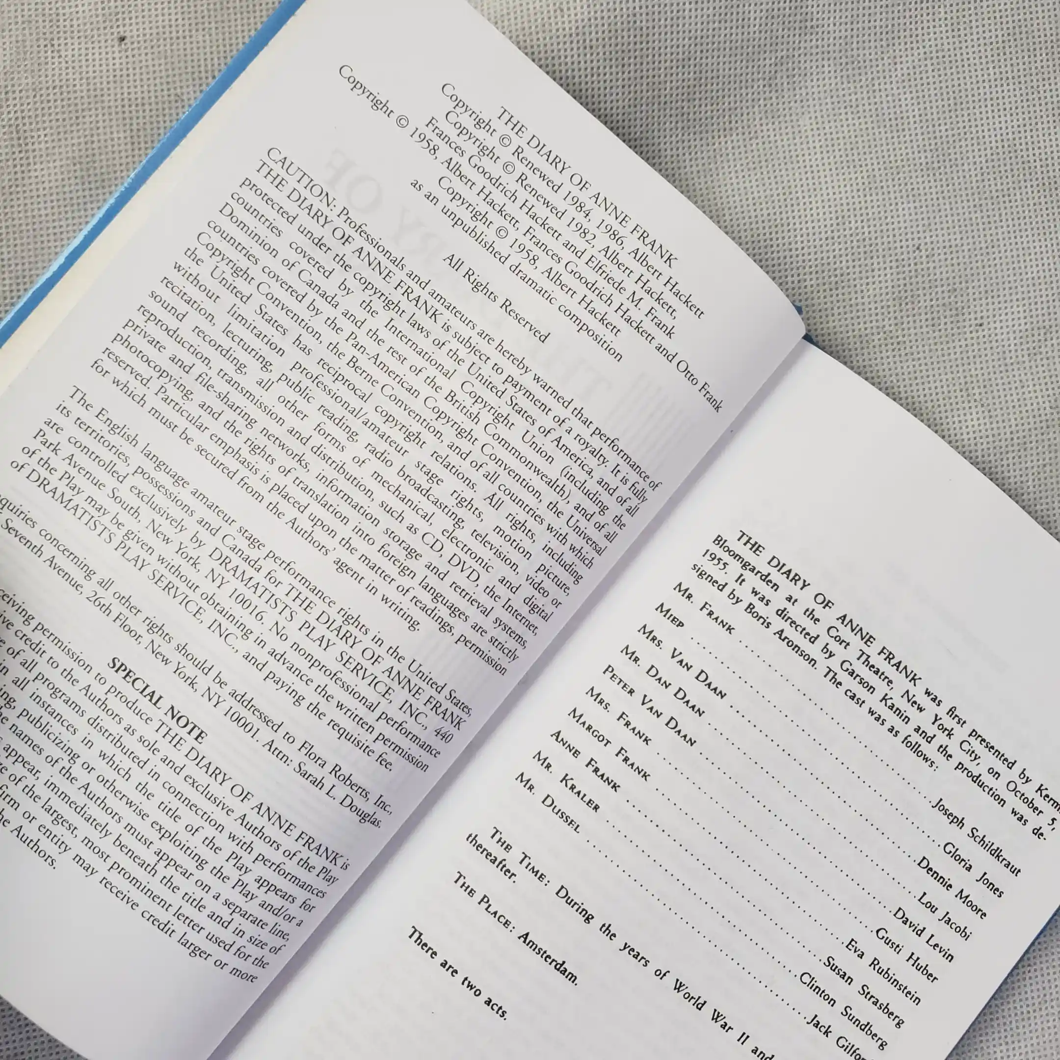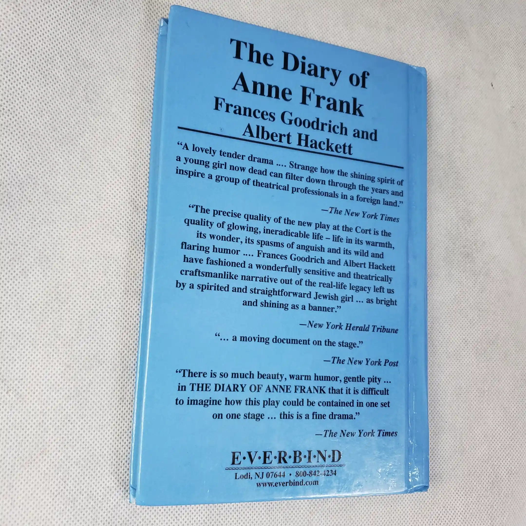 The Diary of Anne Frank – Hardcover Theater Script Book